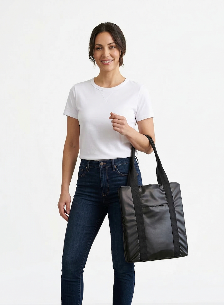 Aviator Satin gives this tote a sophisticated look and wearability. 2 zipper pockets hold your Safety Panel and laptop. 2 deep interior pockets for organizing your life and an exterior phone pocket for easy access. Durable Water-repellent finish exterior. Lining is soft and quilted. BLACK
